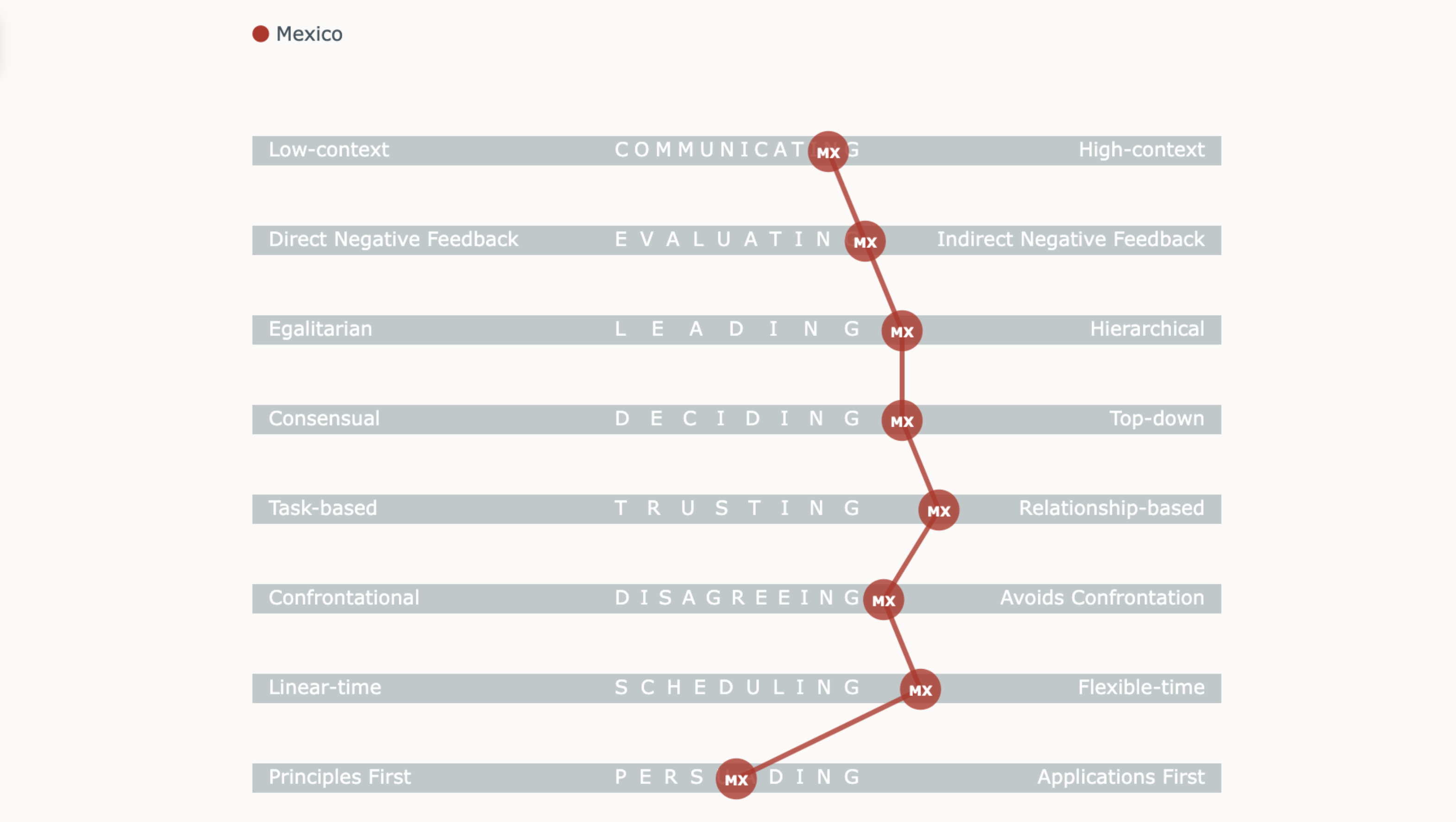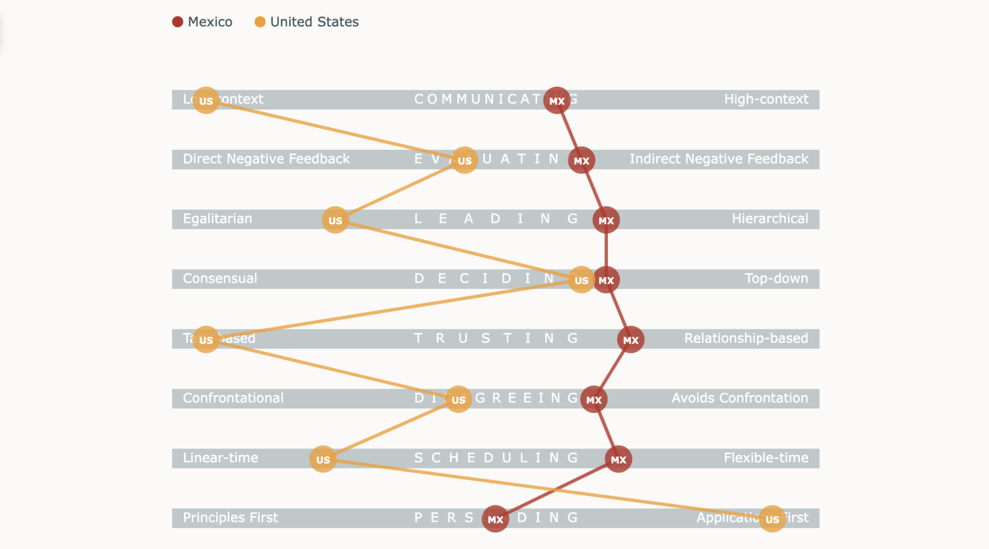 Te recomiendo mucho leer el libro. También, en Pathways, hace unos meses di una presentación sobre este libro y expliqué las diferencias principales de culturas en el trabajo: